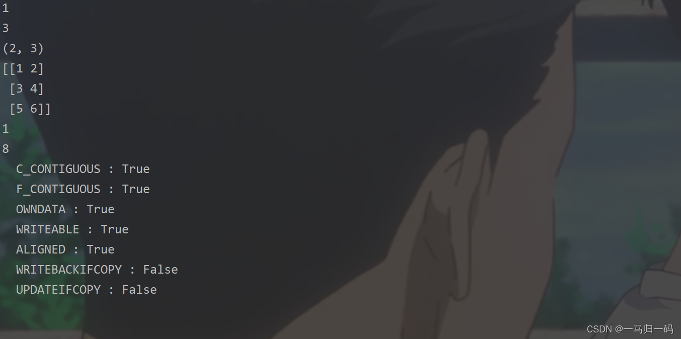 print(a.ndim)#打印a的秩,目前a的维度只有1