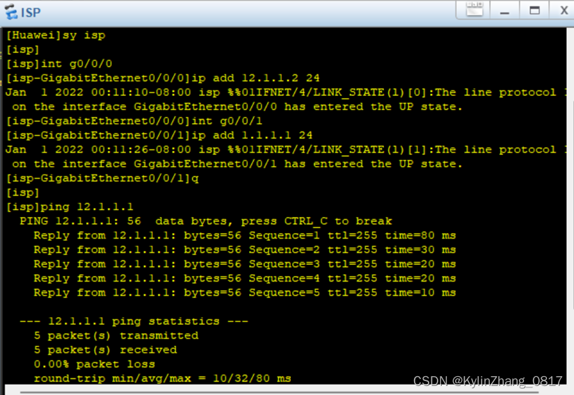 [ISP-GigabitEthernet0/0/0]ip add 12.1.1.2 24