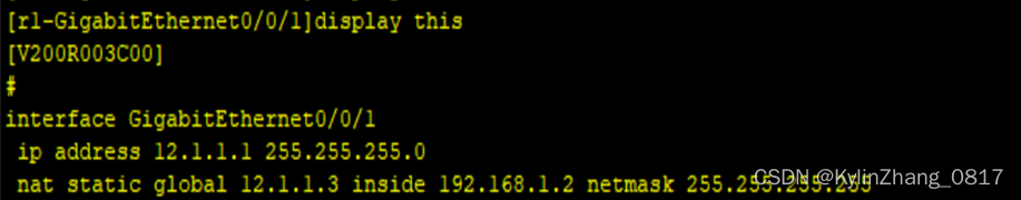[r1-GigabitEthernet0/0/1]undo nat static global 12.1.1.3 inside 192.168.1.2