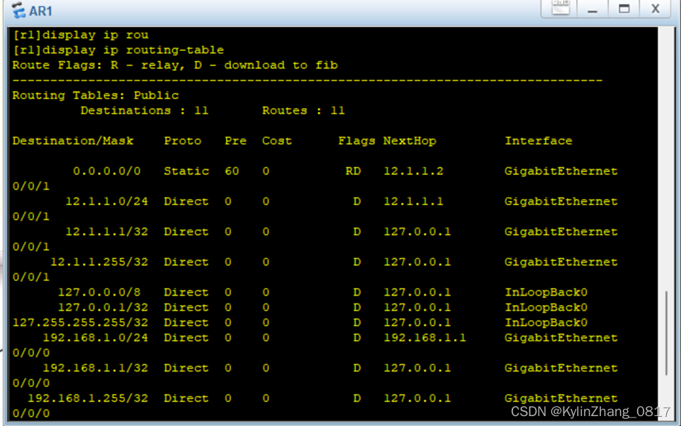 [r1]ip route-static 0.0.0.0 0 12.1.1.2