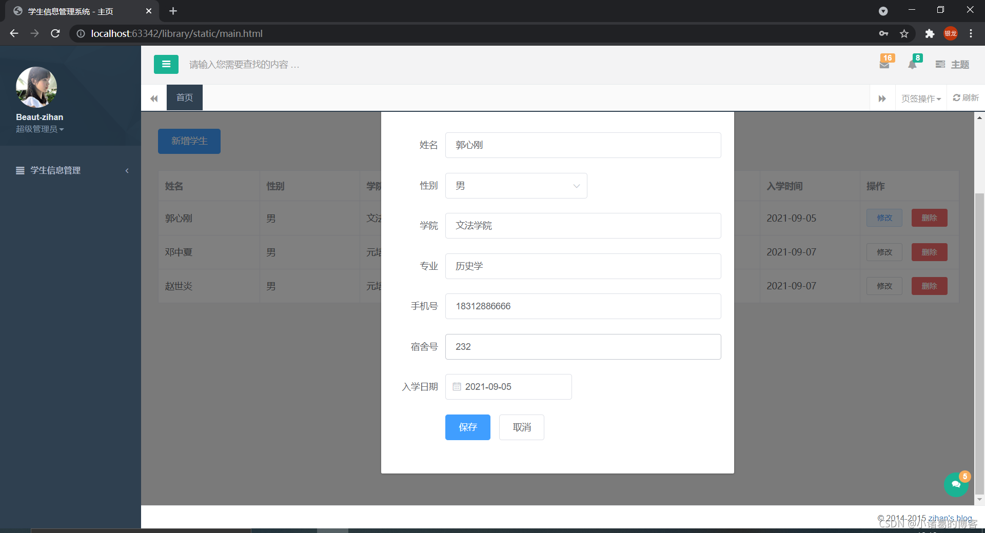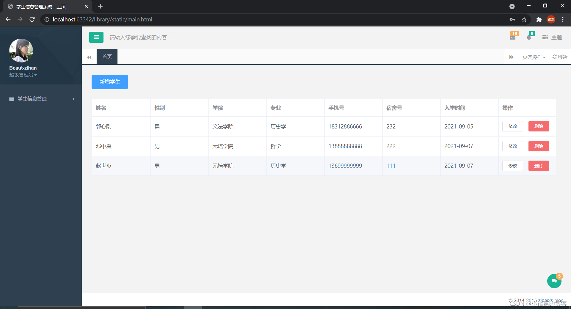 项目名称:基于PHP+MySQL的学生信息管理系统