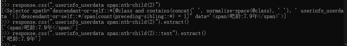 self.itemlist[response.meta['count']]['year']=re.findall(r"\d+\.?\d*",response.css(".userinfo_userdata span:nth-child(2)::text").extract()[0])[0]