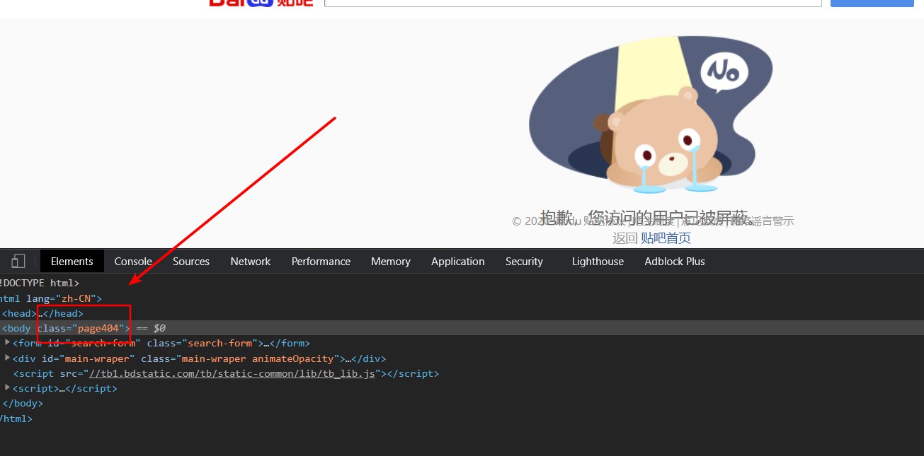 有些帖子的楼主是被贴吧封禁的,这时候直接获取楼主信息往往会产生空段,如果加上了进一步的处理操作就会产生报错。为了避免这一情况,我们设置响应在css类筛选到page404(也就是贴吧提示用户不存在页的标签类)时给item赋一个约定好的值然后直接退出。