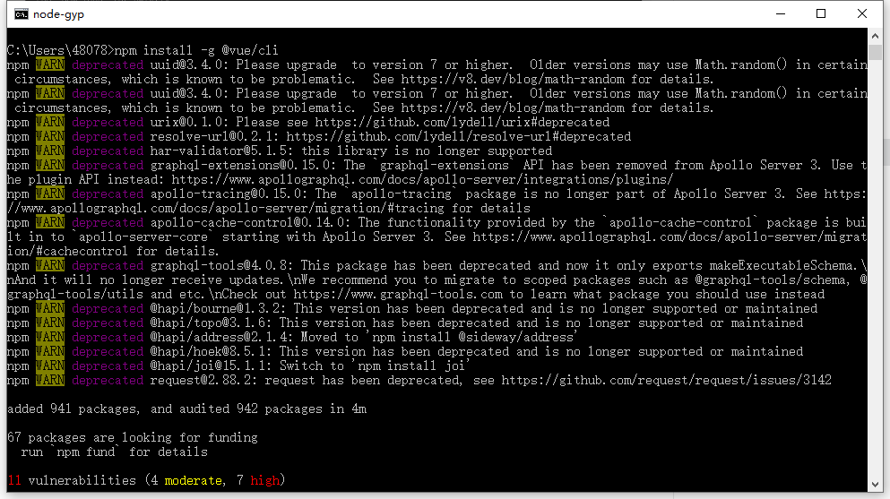 在刚刚的基础上输入输入 :npm install -g @vue/cli